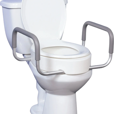 A Toilet Seat Riser is a 3.5" fixed riser that can be placed under your existing toilet seat. Available in standard and elongated sizes, hinged or unhinged, and with or without arms.